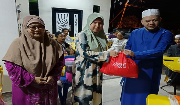 Datuk Dr Fathul Bari Mat Jahya menyampaikan sumbangan kepada penduduk setempat pada Program Singgah Sahur