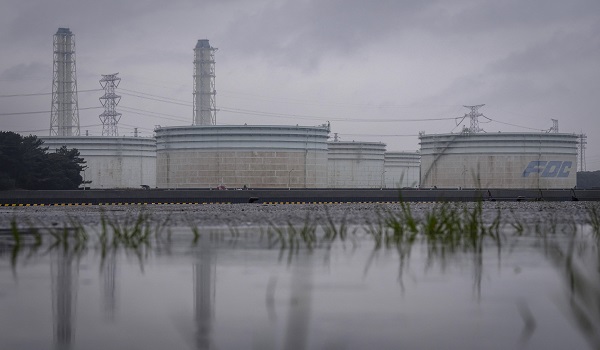 Tangki simpanan minyak kelihatan di Fuji Oil Nakasode Crude Storage Base,salah satu lokasi yang ditetapkan untuk pelepasan simanan minyak nasional Jepun,di Sodegaura,wilayah Chiba,pada 25 Mac 2026/ Foto AFP