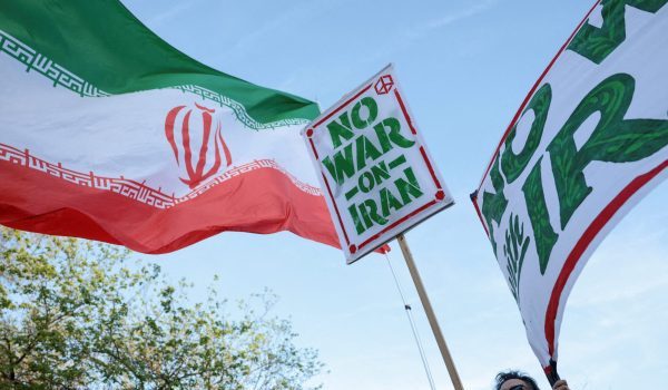 Penunjuk perasaan bantah tindakan ketenteraan terhadap Iran berhampiran White House di Washington,D.C./Foto REUTERS