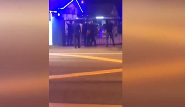Tangkap layar video tular berdurasi 13 saat menunjukkan sekumpulan lelaki menyerang Balai Polis Pekan Nenas di Pontian,Johor