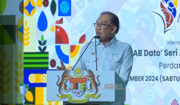 Perdana Menteri Datuk Seri Anwar Ibrahim berucap merasmikan Pameran Pertanian Hortikultur dan Agropelancongan Malaysia (MAHA) 2024 di Taman Ekspo Pertanian Malaysia (MAEPS)/Foto RTM