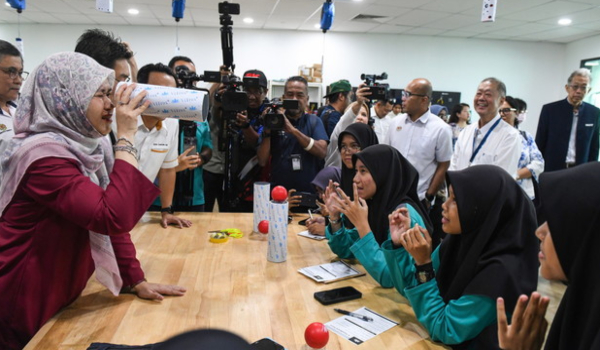 Fadhlina mencuba produk yang dihasilkan oleh pelajar-pelajar SMK Saujana Indah/Foto BERNAMA
