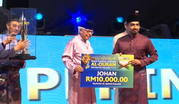 PERMATANG PAUH,15 November -Muhammad Umar Syazuli Mohd Tahir dan Nur Shahirah Fatini Mohd Shaharuddin masing-masing dinobat sebagai johan Qari dan Qariah,Majlis Tilawah,Hafazan Al-Quran dan Nasyid Peringkat Negeri Pulau Pinang,tahun ini.