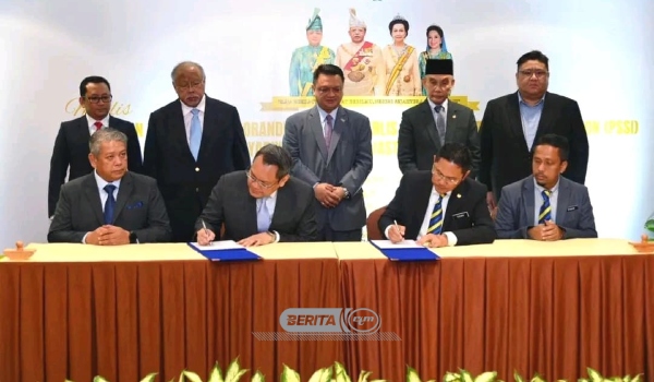 Majlis Pertukaran Dokumen Memorandum Antara Perlis State Secretary Incorporation (Pssi) Dengan Syarikat Sirage Skyvast Holdings Sdn. Bhd disaksikan Raja Muda Perlis,Tuanku Syed Faizuddin Putra Jamalullail di Kompleks Dewan Undangan Negeri