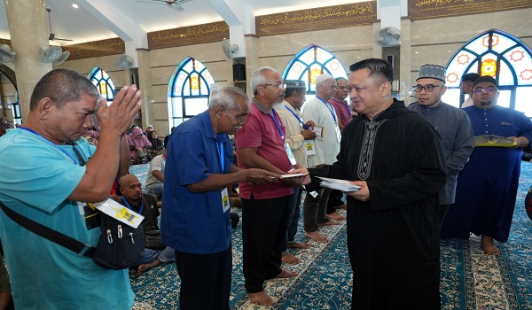 Raja Muda Perlis menyampaikan sumbangan agihan zakat MAIPs di Masjid Terapung Al-Hussain/ Foto RTM