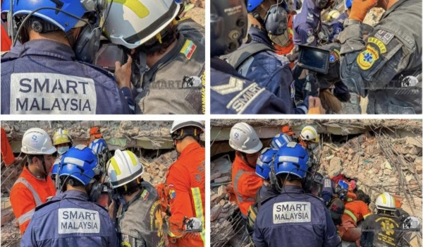SUBANG,7 April – Seorang lelaki berusia 47 tahun yang tertimbus lebih 72 jam di kawasan runtuhan Worksite K10,Myanmar berjaya diselamatkan oleh Pasukan MAS-01 SMART NADMA dalam misi kemanusiaan Operasi MyTeam Relief Gempa Bumi Myanmar,baru-baru ini.