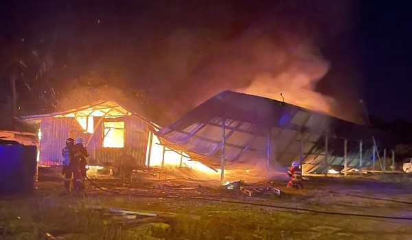 Kebakaran melibatkan sebuah rumah pekerja binaan projek di kawasan berkenaan.