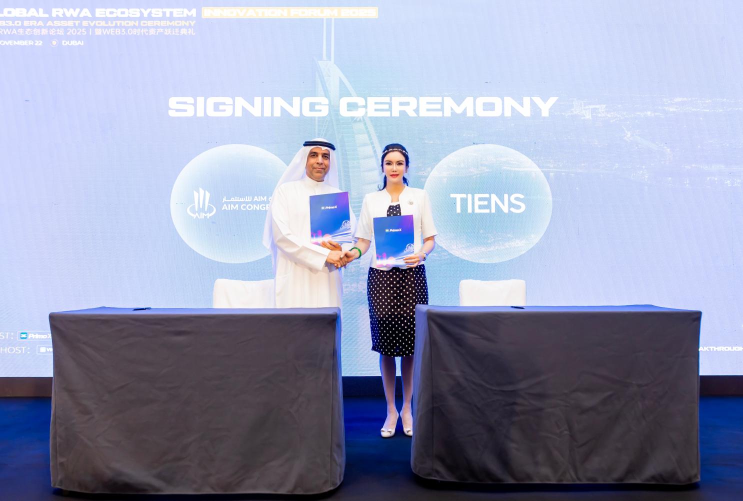 In the key session that followed, AIM officially signed a strategic cooperation agreement with Tiens Group and VMOMENT. This milestone not only marks a new stage of collaboration among all parties, but also signifies their joint commitment to advancing the deep integration of digital assets with the global investment ecosystem—an achievement of major strategic significance and contemporary value.