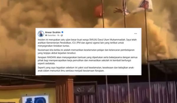KUALA LUMPUR,14 April – Perdana Menteri Datuk Seri Anwar Ibrahim mengarahkan Kementerian Pendidikan (KPM) serta agensi berkaitan menyegerakan tindakan susulan kebakaran di Sekolah Menengah Ugama (SMU) Arab (A) Darul Ulum Al-Muhammadiah di Bachok,Kelantan,pada Ahad lalu.