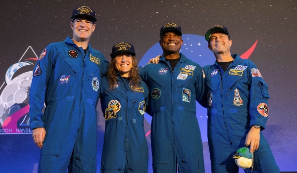 Kru Artemis II termasuk Christina Koch,Victor Glover,Reid Wiseman dan Jeremy Hansen hadir sidang media selepas mendarat di Houston/Foto REUTERS